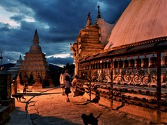 下午开始加德满都河谷宗教文化之旅:前往加德满都“杜巴广场”(DURBAR SQUARE,联合国人类文化遗产),参观新皇宫、故宫哈禄曼多卡宫,皇宫门口由以英勇善战而闻名的廓尔卡士兵守卫。古朴精致的活女神庙(KUMARI)、赋予加德满都城市名的独木庙、塔莱珠女神庙见证了尼泊尔数世纪的风风雨雨。然后参观印度教圣庙“帕斯帕提那寺”(Pashupatinath),与印度教苦行僧合影,运气好的话能惊见印度教徒火葬。最后参观尼泊尔的地标建筑--“博达哈大佛塔”(Boudhananth,联合国人类文化遗产)。晚餐在一家尼泊尔式餐厅,品尝独特风味的尼餐并观赏歌舞表演。