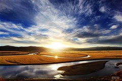 九曲黄河第一湾位于若尔盖县唐克乡,地处草原腹心地带,曲折河水分割出无数河洲、小岛,水岛翔集、渔舟横渡,被中外科学家誉为“宇宙中庄严幻影”。这里是四川省最大的草原,红军二万五千里长征曾多次通过这里,留下了许多可歌可泣的动人故事和革命遗址。你可以静坐在母亲河边用心倾听她对历史的诉说,领略“落霞与孤鸿齐飞,秋水共长天一色”,在暮色苍茫里感悟人生长河奔腾的壮歌。