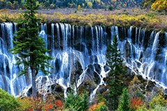 1.九寨沟:九寨集翠海、叠溪、彩林、雪峰和藏族风情于一体,其自成天成、美丽绝伦的自然风光闻名于世。蓝天、白云、雪山、森林、尽融于瀑、河、滩、缀成一串串宛若从天而降的珍珠;其分为则查洼沟、日则沟、树正沟三条沟,呈“丫”字分布;整个构成了一个五彩斑谰、神奇梦幻的人间仙境,一个不见纤尘、自然纯净的“童话世界”。