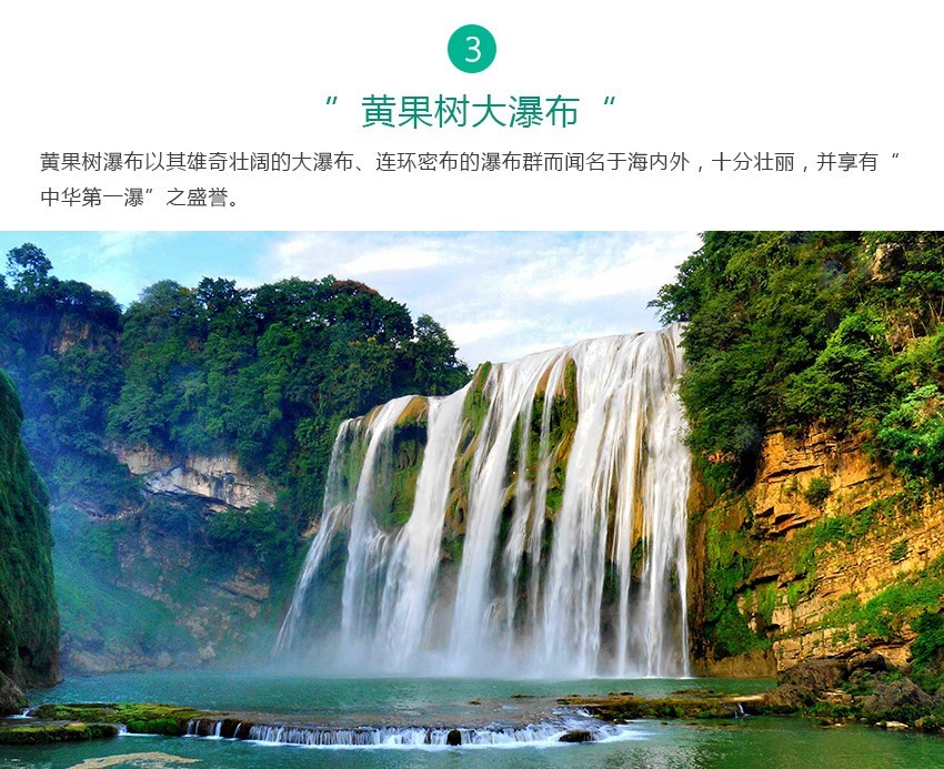 6:00-6:40左右全市发车站点(火车站大昌隆超市对面)集合上车。全程经贵黄高速公路(高速路上无突发事件,无堵车等情况)车程2小时左右抵国家5A级景区——【龙宫】(游览时间约1.5小时)。游览龙宫风景区,观龙门飞瀑,然后乘电梯(已含35元/人)至码头,乘船游览840米长的暗湖溶洞,洞中钟乳奇石林立,景观优美。11:00-14:00左右乘车赴黄果树景区享用中餐【途中参观珠宝、波波糖、乳胶(3选1)】,14:00—15:30餐后换乘景区环保车(已含50元/人),游览瀑布群最宽的【陡坡塘瀑布】游览时间:不少于1小时;这里也是唐僧师徒四人取经的必经之地;游览有绿色喀斯特、水上石林、天然盆景之称的【天星桥景区】游览时间:不少于1小时;游览【黄果树大瀑布】游览时间:不少于2小时;(注:不含上下扶梯单程30元/人往返50元/人;属景区内不必须自费项目,请客人自行自愿慎重消费)您可以从前后左右上下里外8个角度欣赏这个亚洲最大的瀑布,您也可以一路向上走进美猴王的府邸【水帘洞】,去找找黄果树名称的由来【黄角榕】,过铁索桥;您也可以在观瀑台寻找大瀑布最美的角度留影;参观结束后返程。21:30(左右)抵达贵阳,结束本次轻松美好、精彩难忘的探索贵州双5A之旅。