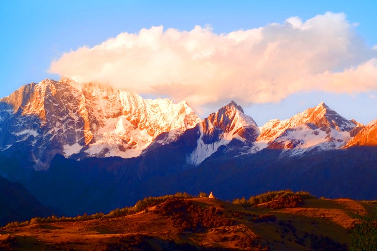 早起,欣赏摄影天堂晨曦,体验【塞外高原】的魅力,观赏藏式民居风光。穿越高尔寺隧道。经雅江穿越【剪子